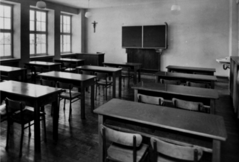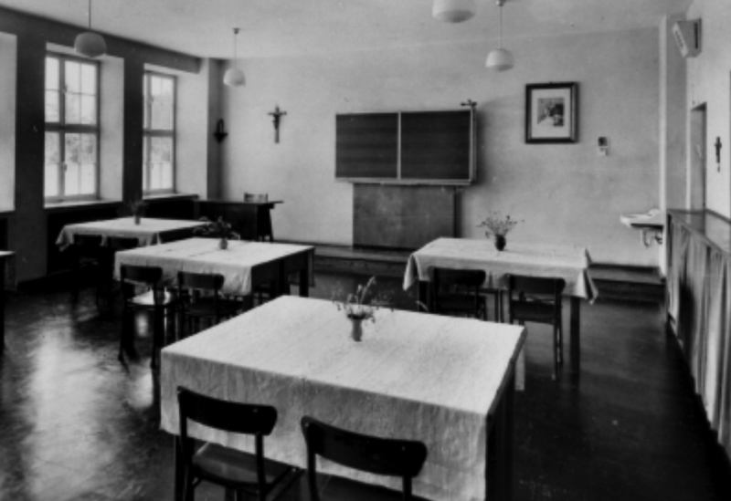 Mit dem Ruf »Benedicamus Domino« (»Lasst uns den Herrn preisen«) wurden wir im riesigen Dormitorium früh morgens aus dem Schlaf gerissen. Wir antworteten alle »Deo gratias!« (»Gott sei Dank«). Am Bett kniend verrichteten wir ein kurzes Morgengebet und begaben uns anschließend zu den vielen Waschbecken, um unsere Morgentoilette zu erledigen. Ein Pater beobachtete uns manchmal bei diesen Zeremonien. Um sechs Uhr verrichteten wir in einem der größeren Klassenzimmer unser alltägliches Morgengebet, das etwa fünfzehn Minuten dauerte. Im Silentium ging es nun zur Hauskapelle. An drei Altären begann gleichzeitig die Morgenmesse in lateinischer Sprache, nachdem wir vorher noch eine geistliche Einstimmung durch den Aufsicht führenden Pater bekommen hatten. Es war ulkig, zuzusehen, welcher Zelebrant zuerst mit seiner Messe fertig war. Allen galt aber der Hauptgottesdienst am Hochaltar. Der tägliche Kommunionempfang war eine Selbstverständlichkeit. Im hinteren Raum der Hauskirche nahmen die Brüder des Ordens, die Novizen, das Hauspersonal sowie die Ordensfrauen, die das Waisenhaus betreuten, am Gottesdienst teil. Nach der heiligen Messe ging es zum Bettenmachen zurück in den Schlafsaal. Jeder musste seine Schlafstelle im Eisenbettgestell peinlichst genau herrichten. Der Strohsack wurde aufgelockert und hochgeplustert. Das Kopfkissen musste mit seinem Häckselinhalt kräftig durchgeschüttelt werden. Ein ausgebreitetes weißes Leinenbetttuch bedeckte die Strohmatratze. Dann wurde ein weiteres Bettlaken aufgelegt, darüber zwei dicke Wolldecken, die mit dem zweiten Leinentuch zum Kopf hin etwa dreißig Zentimeter umgeschlagen werden mussten. Das fertige Bett wurde häufig kontrolliert. Vor Winterbeginn stopften wir unsere »Schlafsäcke« mit neuem Stroh aus, weil das alte durchgelegen war. Nach der Herrichtung unserer Betten machten wir uns in unsere Studiensäle auf, um noch Vokabeln zu lernen oder Sonstiges für den Unterricht vorzubereiten.