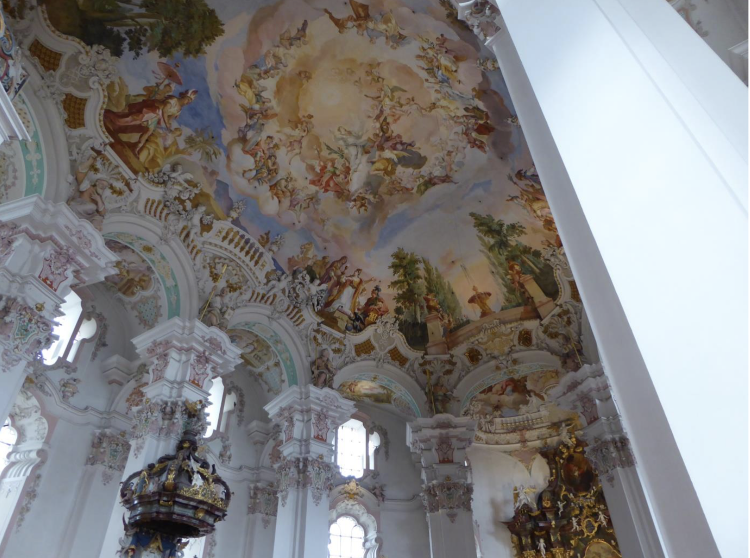 Also startete ich bereits am Donnerstag, 6. Oktober 2016, in Richtung Süden, um mich zunächst mit Klassenkamerad Gustl Teichmann in Balingen-Weilstetten zu treffen. Von dort aus ging es gleich gemeinsam weiter nach Bad Saulgau. Hier suchten wir den ehemaligen Klepfer und Webmaster der Klepferseiten Alfred Epple auf. Obwohl wir uns eigentlich vorher noch nie gesehen hatten, kam auf Grund der gemeinsamen Weiße-Väter-Vergangenheit binnen kurzer Zeit ein so vertrautes „Wir-Gefühl“ auf, sodass wir uns so recht wohl fühlten, so als wären wir schon seit ewigen Zeiten miteinander bekannt. Und als Frau Epple noch ein leckeres Menü auf den Tisch zauberte, bot sich die gute Gelegenheit, alte Zeiten neu aufleben zu lassen: „Kennst Du noch...? Weißt Du noch ...? Wie hieß denn der Pater, der ...? Gut gestärkt konnten wir in das nahe gelegene Schussenried aufbrechen. Unterwegs haben wir frei- lich einen kleinen Abstecher in eine der schönsten Barockkirchen nach Steinhausen gemacht, sie lag unmittelbar am Weg und es wäre unverzeihlich, hätten wir dieses Kleinod links liegen gelassen.