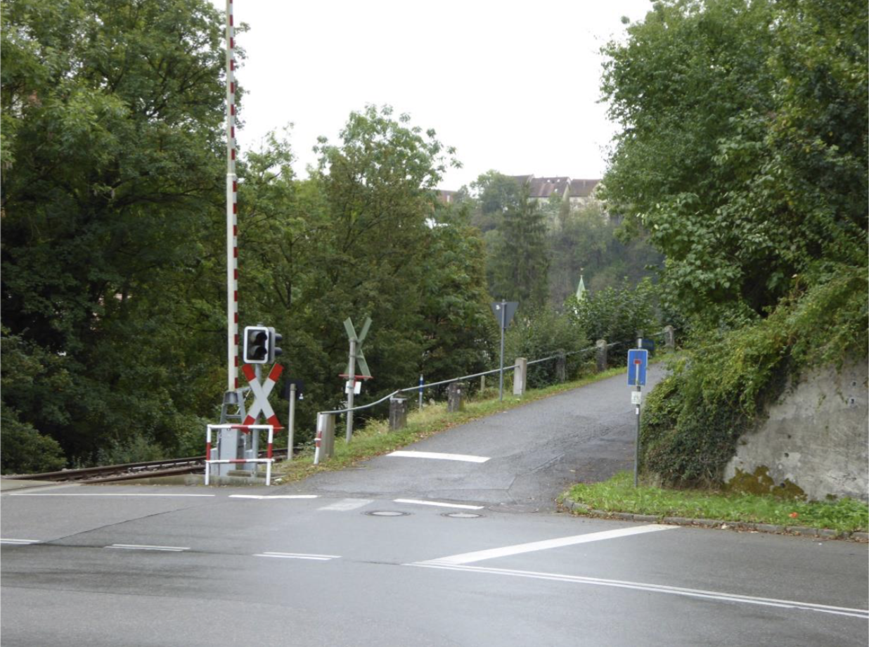 passiert sind, fährt doch der Zug direkt aus einem Tunnel über die unbeschrankte
