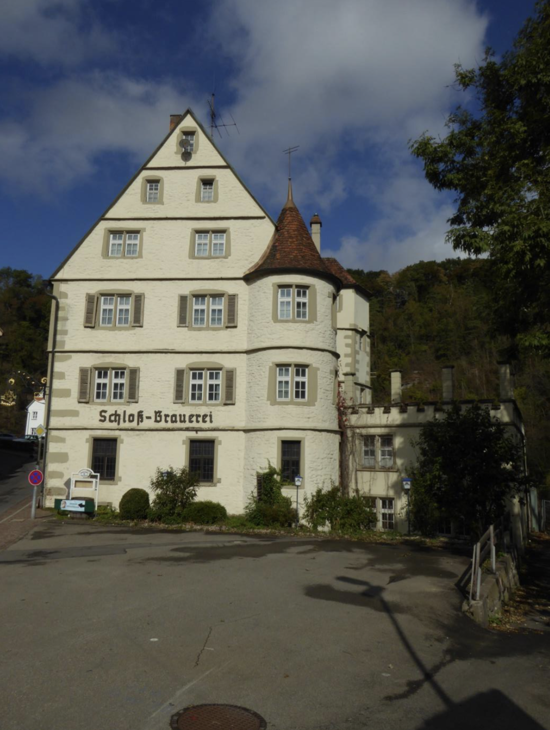 Trotz allem, das Leben geht weiter ... und ich wollte zu Gustl nach Weilstetten fahren, um ihn nach Erlaheim abzuholen. Weit bin ich jedoch mit dem Auto nicht gekommen, denn ich kam an der inzwischen geschlossenen Haigerlocher Schlossbrauerei vorbei. Damals herrschte hier noch Hochbetrieb im Gasthaus und dem dahinter liegenden Brauhaus, das zwischenzeitlich abgerissen ist. Wie oft kamen wir früher da vorbei und hörten das Geklapper der Bierkrü- ge und mussten unsere Gelüste unterdrücken, denn ein illegaler Besuch dort hatte garantiert den Rausschmiss aus den frommen Gemäuern des Internats nach sich gezogen.