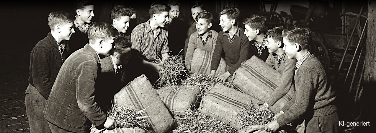 für alle Schüler im Stopfen der Strohsäcke. Dafür lag im Hof ein riesiger Haufen